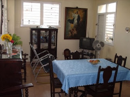 This apartment belongs to the Doctor Marta Gonzalez, paediatric neurologist. The apartment is in downtown of Matanzas, to two blocks from Parque de la Libertad. It has a big and comfortable room for rent, with air conditioning, fan, private bathroom en suite with cold and hot water. The guests may use the refrigerator that is not inside the bedroom, as well as the TV and VCD in the living room of the house. The house also has for the guests a small courtyard with armchairs. The apartment is completely set with Ruben Fuentes works who is an artist and is also the son of the hostess. Dinners and breakfasts are offered, laundry service too, everything with clients request and extra charge. A very safe parking is one and a half block away from the house, in front of the provincial government, only for guests. The hostess and her 18 years old daughter speak English, as well as her father who doesn�t live in the house but remains a big part of the day assisting the clients and doing everything possible for the clients comfort. The cleaning service is every day.