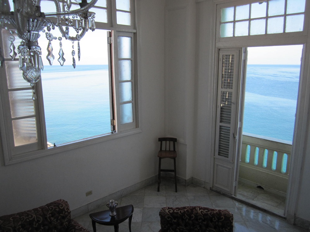 Este apartamento tiene espectaculares vistas de la Habana desde sus 5 balcones. Cuenta además con 2 salones de estar y una cocina de uso privado para clientes. Tiene 5 habitacioens para la renta con ventanas que brindan mucha iluminacion. Todas las habitaciones tienen tambien aire acondicionado, ventilador y baño privado dentro de la habitacion; una de ellas tiene dos camas personales y las otras cuatro habitaciones tienen una cama doble cada una. En esta casa se brinda ademas el servicio de Desayuno (a solicitud del cliente y con precio extra). Se realiza la limpieza todos los dias y se cambia la ropa de cama cada dos dias. El elevador funciona las 24 horas.